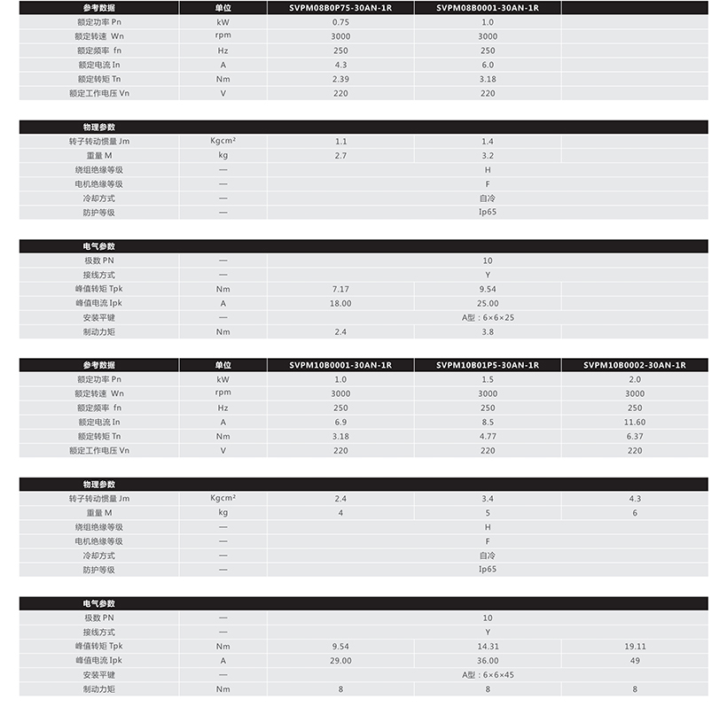 | 1 | 電機系列 | SVPM 永磁同步伺服電機 | ||||||||